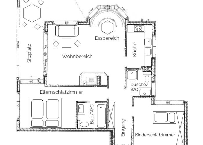 Nasszellen: 1 Bad/WC und 1 Dusche/WC